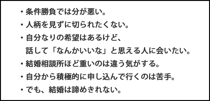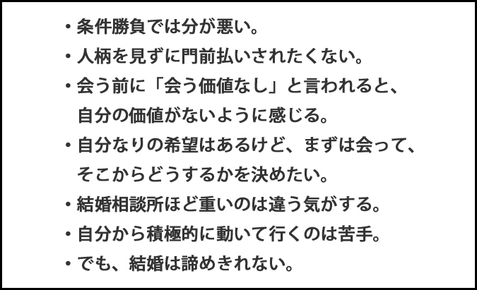 - そして、「手軽に利用できること」と「婚活しやすいこと」も別問題です。