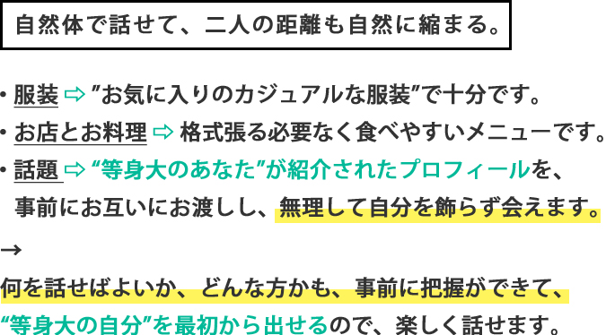 これらで選ばれるとよいです。 - ・自分に合った方法(出会い方)である。