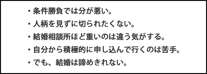 - そして、「手軽に利用できること」と「婚活しやすいこと」も別問題です。