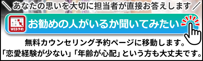 「こういうときはどうすればいい?」、「どうやって相手を選んだらいい?」など、気になる点は、無料カウンセリングの場でも、ご入会後でも、いつでもお尋ねください。